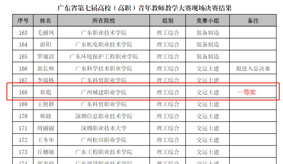 大赛自今年4月启动以来,学校内部高度重视并组织了院、校内选拨。崔琨老师凭借扎实的教学基本功和突出的教学创新,成功入围广东省现场决赛。据悉,本次比赛全省94所高校,1207名青年教师参加网络评选,210名教师入围现场决赛。
